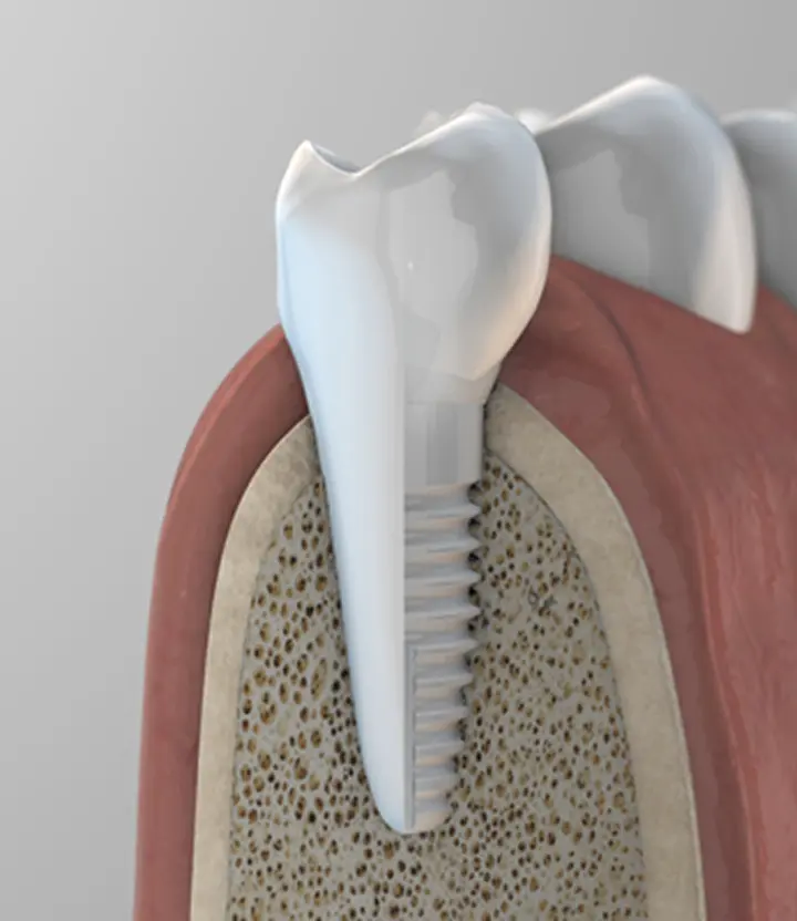Parallele Ästhetik zur Zahnwurzel durch weiße, zahnfarbene Implantatkörper